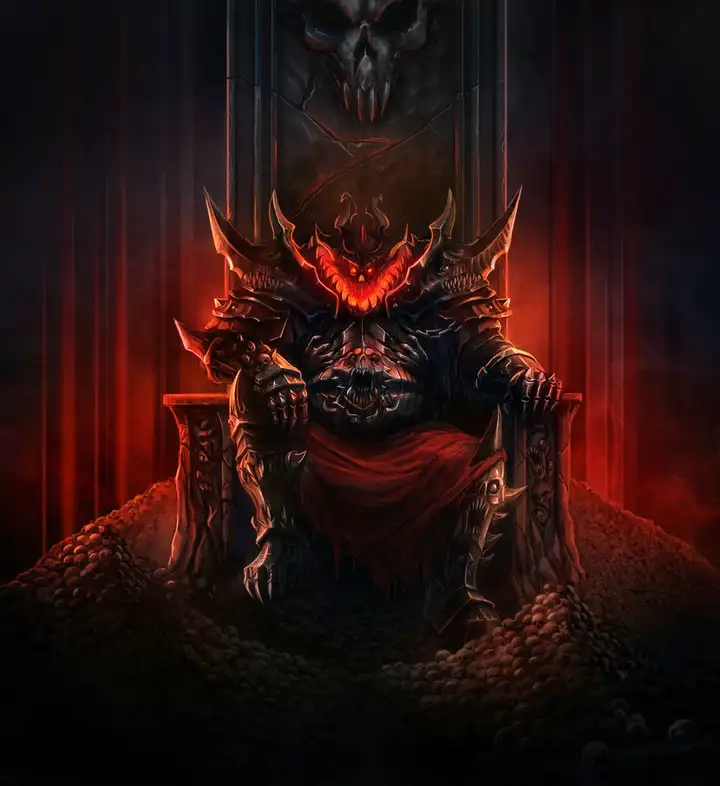 在黄铜要塞的最深处,越过壁垒阶梯与八根铁柱,恐虐自颅骨王座的神位上睥睨着其所有仆从。在此处,它号令血神军团与凡世奴仆将战火燃遍银河遥远角落。每场胜利皆会令其渴求更多鲜血,每次挫败后,恐虐便会取用败亡冠军之血,汇入其疆域内的血河。