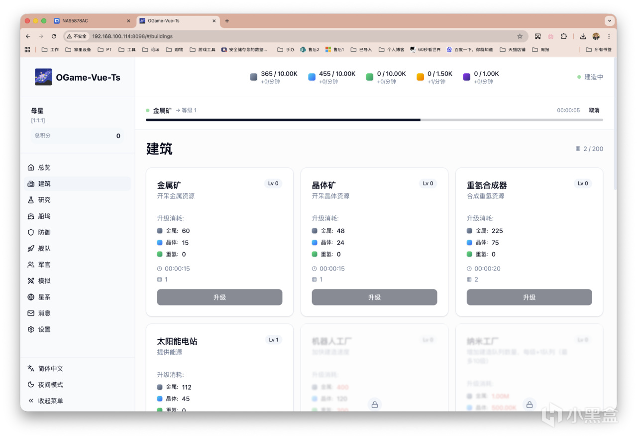 因爲筆者過去淺玩過一小段時間OGame,刷到這個項目就推給大家,作爲一個休閒、摸魚小遊戲還是挺不錯的~(還突然想起來去年跟羣友一起玩的梅爾沃放置,也挺有趣)。