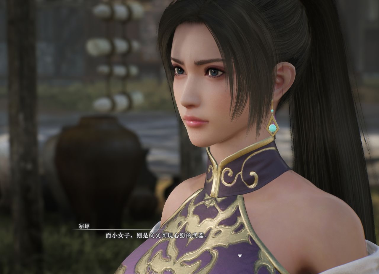 貂蝉在游戏中将原版的献董卓改为刺杀被擒,后续利用吕布杀董卓的过程也是围绕与主角的羁绊展开。貂蝉的设定彻底打破了历代与吕布绑定的CP设定,不再是依附于他人的角色,转而与原创主角紫鸾形成核心感情线,还多了被王允收养培养成刺客的背景设定。她不再是单纯的连环计工具人,对主角的深情和乱世中的身不由己,让角色多了份挣扎感,人物的塑造更加立体饱满。最有趣的还是结局分两种走向,情谊等级未满时会退隐退场,太平值刷满则会向主角紫鸾告白。