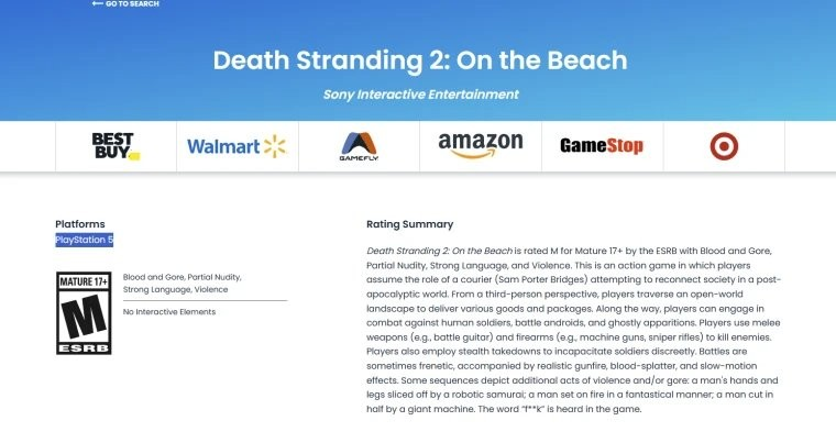 近期,《死亡搁浅2:冥滩之上》在ESRB(美国娱乐软件分级委员会)官网的评级页面发生变动,所有关于PC平台的表述均被移除。这一调整迅速引发玩家社区热议,相关话题登上多家社交平台热榜。