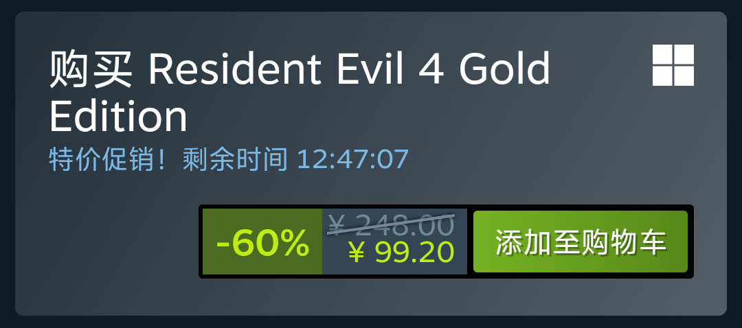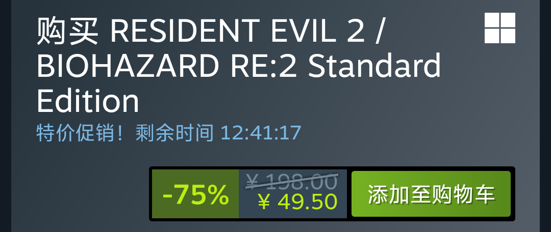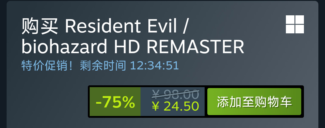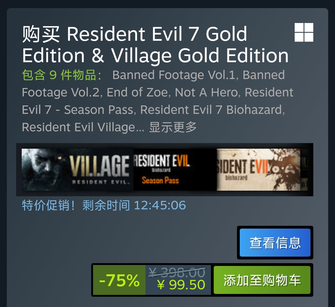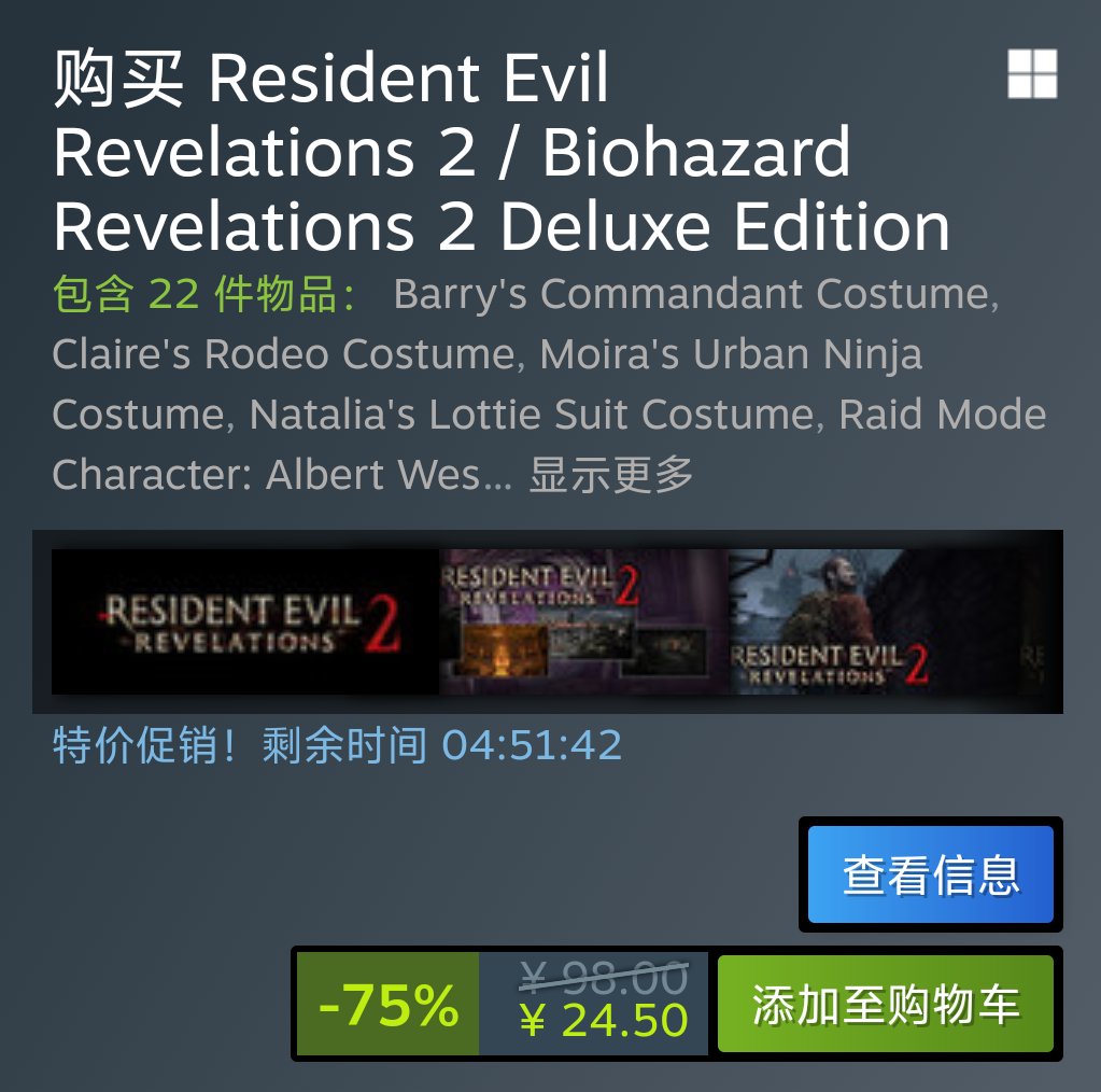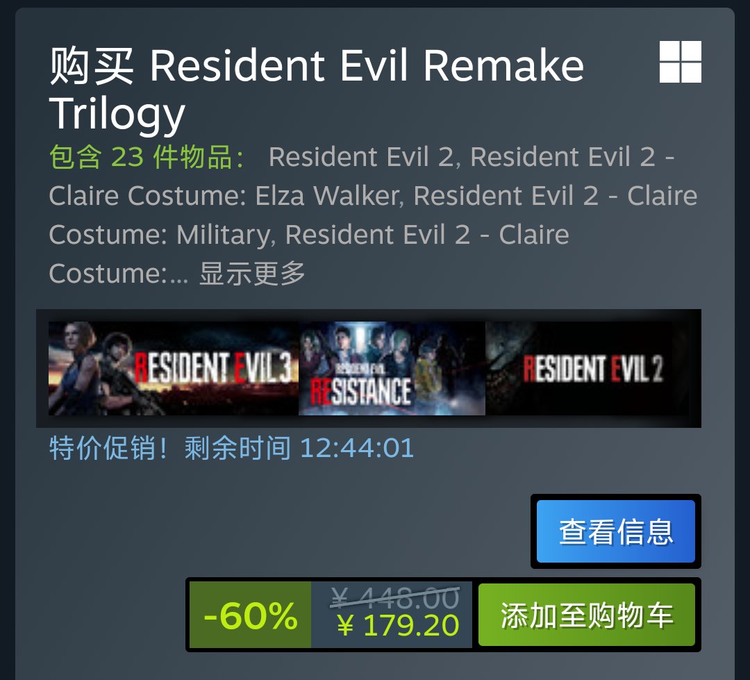 《生化危机》系列的新史低及平史低折扣将在12月19日凌晨2点结束,目前折扣仅剩12个小时。