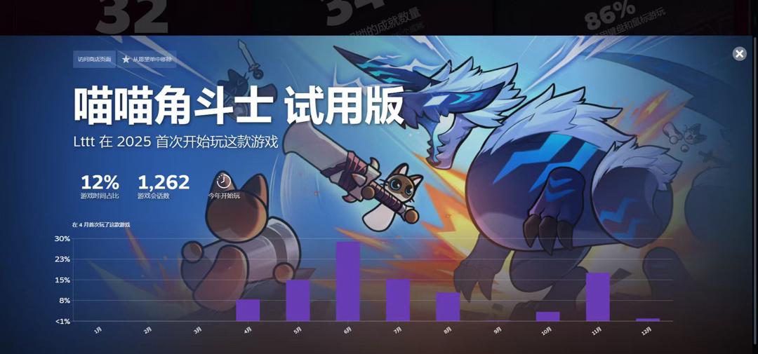 最近steam的年度报告出来了,老大们有去看自己的年度游戏是什么吗喵今年有好好玩游戏吗?