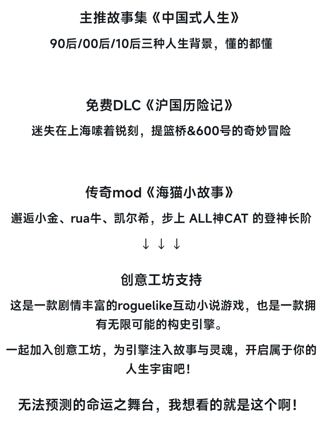 一款劇情豐富的roguelike互動小說,也是一款擁有無限可能的構史引擎。