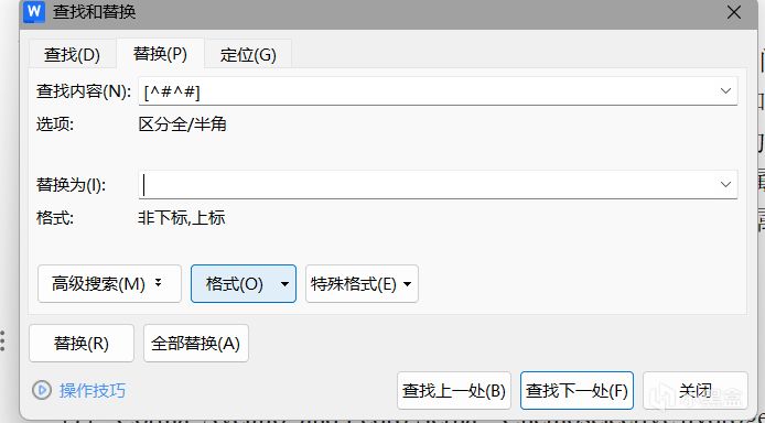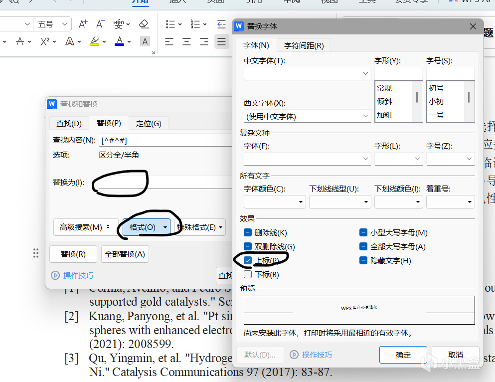 这里注意,一定先点击一下替换为后面的空白!!一定要!!然后点击格式,上标,确定