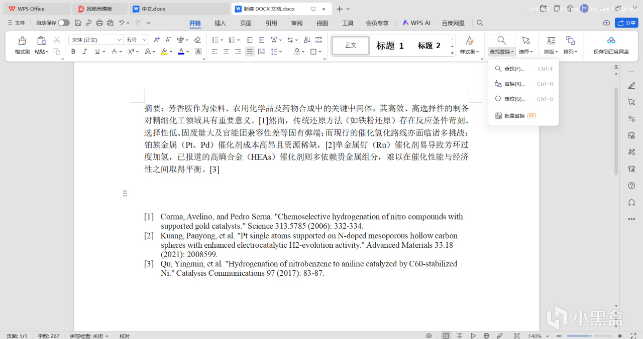 然后接下来是如何一键将引用的数字变成上标,找到查找,替换