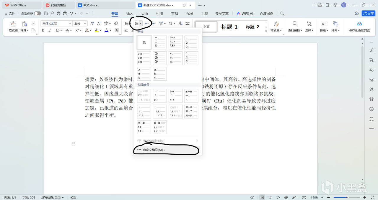 首先打开wps,找到编号,点开最下面的自定义编号(如果上面自动的有你需要的,直接用那个就可以)