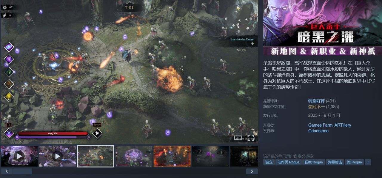 原¥58的《巨人杀手:暗黑之潮》限时一天免费领取,在EPIC平台白嫖入库。之后的每一款都仅有1天领取时间,随后刷新下一款。