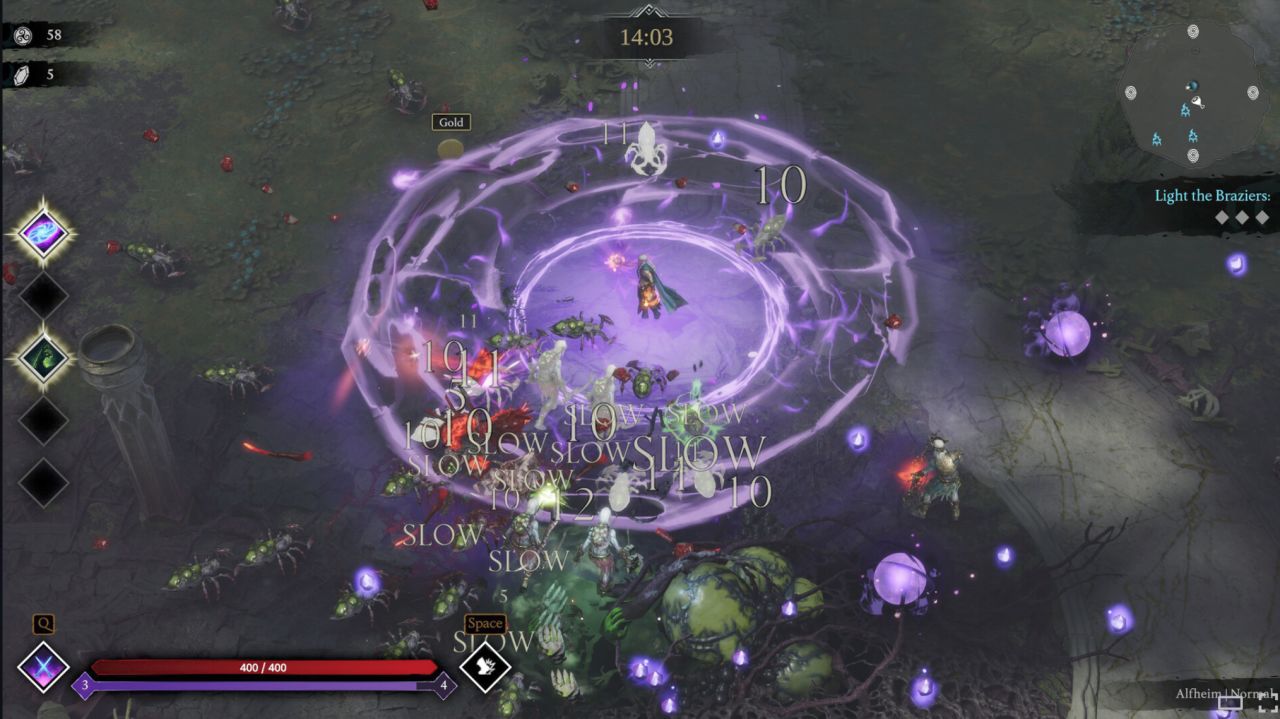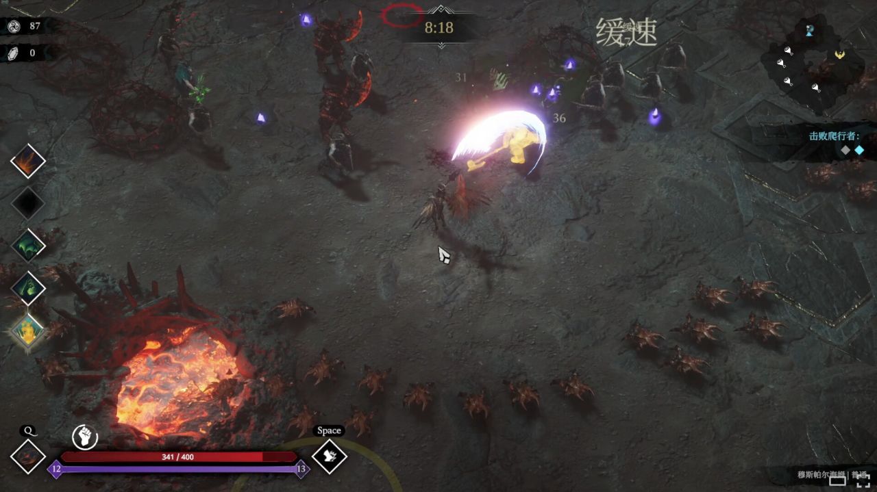 这是一款暗黑画风的类幸存者游戏,角色职业与诸神的搭配可以打出不同的效果,简单模式是爽快割草,随着难度的提高可能体验不太好,堆怪有点多。