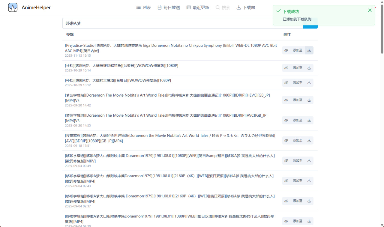 最后则是搜索界面了,相当于整合性的资源查找。所有界面都支持直接将其添加到下载器中。