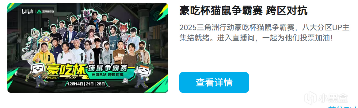 正好最近B站又在整跨区的三角洲比赛,叫【豪吃杯·猫鼠争霸赛】。额,一如既往的符合B站的风格,每队一个洲UP,带两个外区的,比如生活区美食区动漫区,甚至是时政区UP【圆脸】和【小Q】