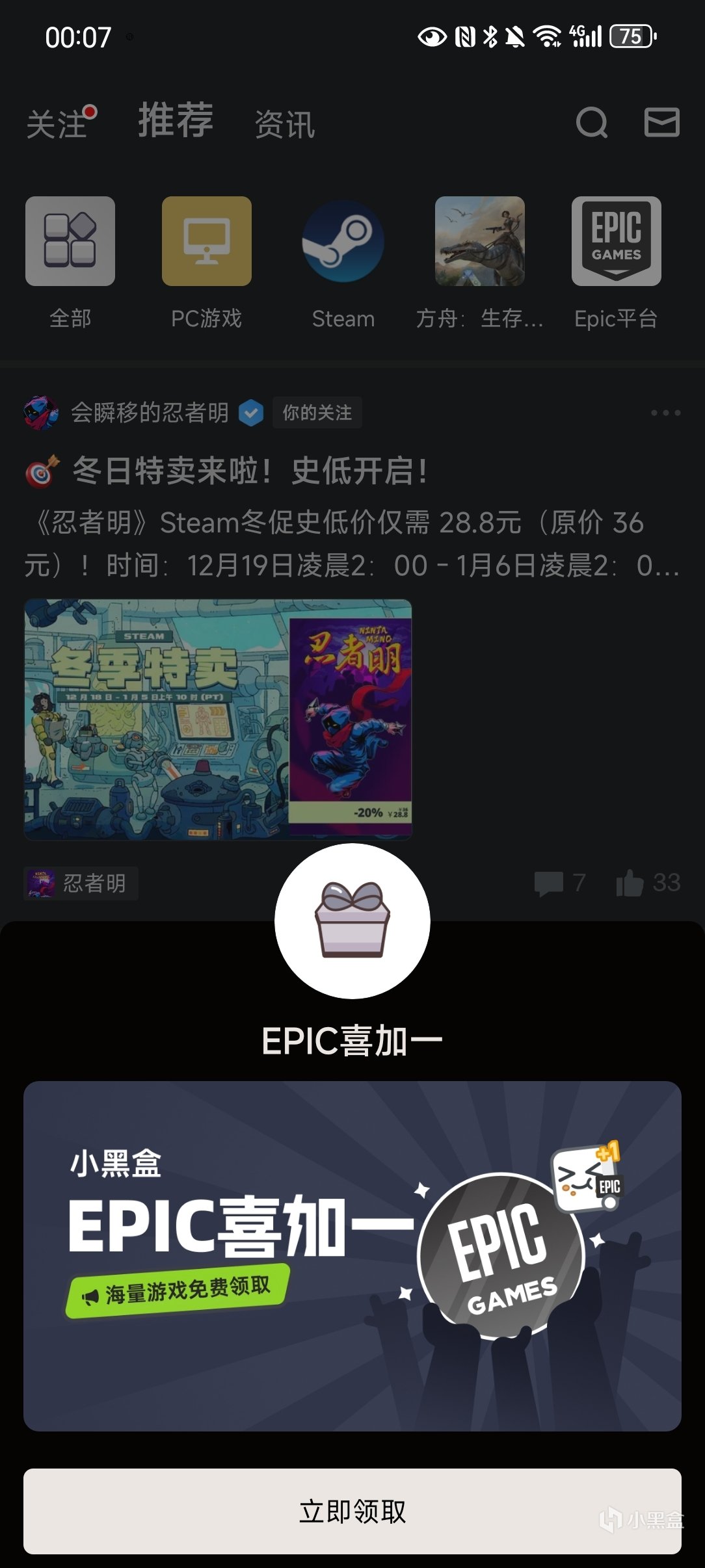 當然不方便用電腦的小夥伴還可以使用小黑盒的一鍵領取功能,非常方便快捷。