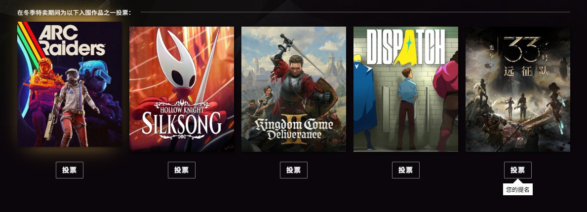 Steam大獎11個獎項入圍遊戲名單今日揭曉,所有非受限 Steam 帳戶皆可爲11個獎項中的每個獎項投一票,最終獲獎名單將於北京時間 2026 年 1 月 4 日2:00公佈。