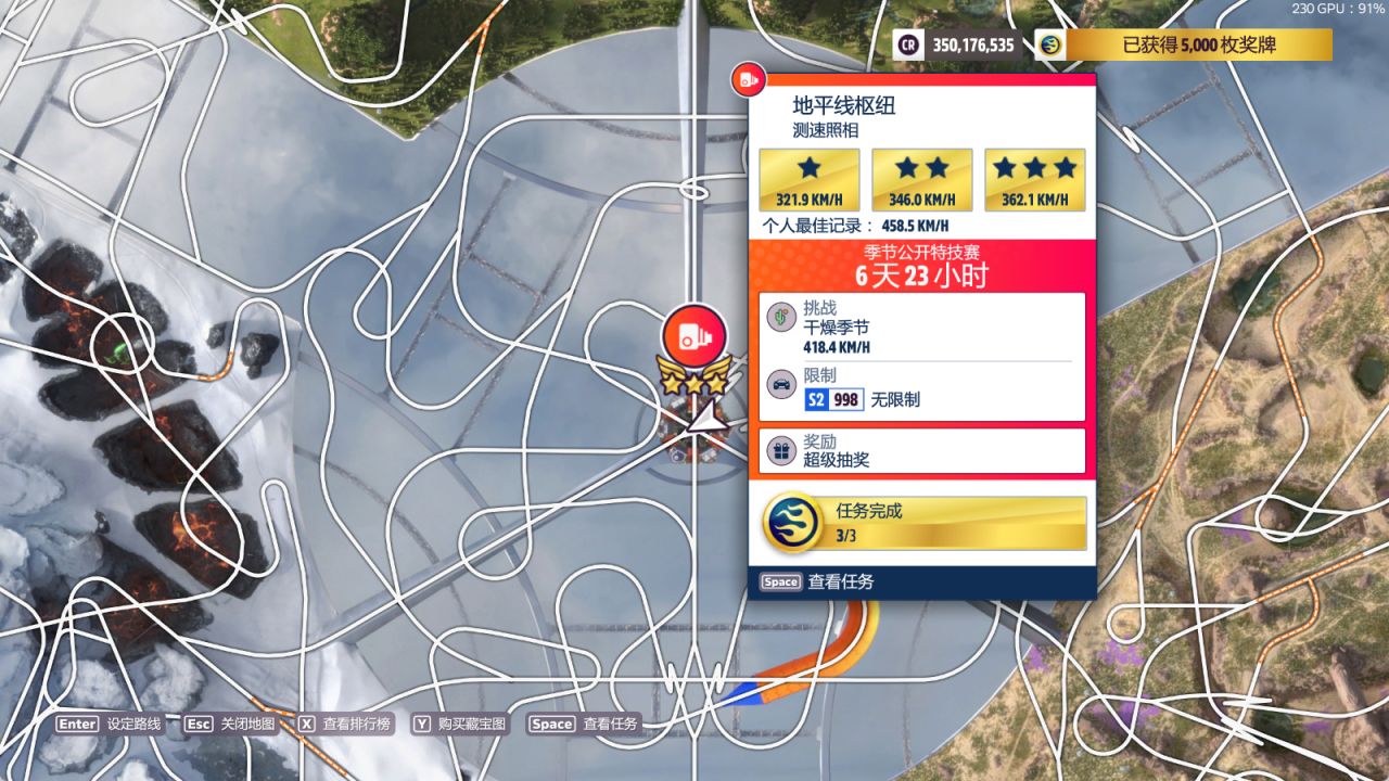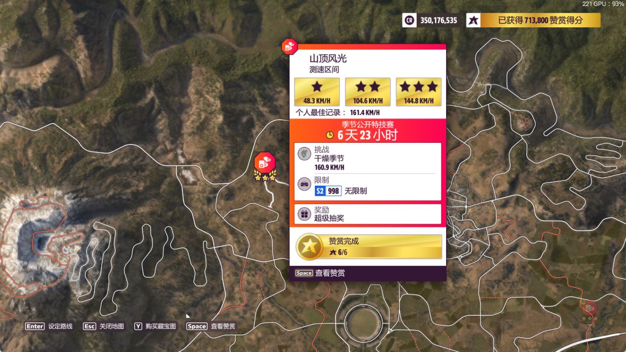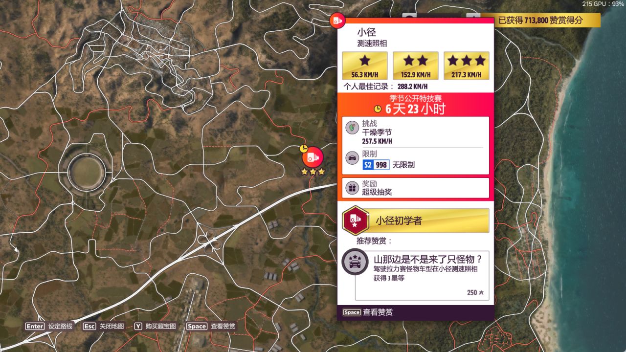 测速区间:山顶风光,完成奖励为超级抽奖(完成条件:160.9km/h)