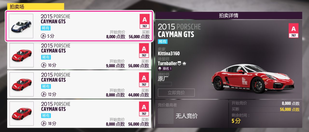 奖励车辆为:2015款PORSCHE CAYMAN GTS