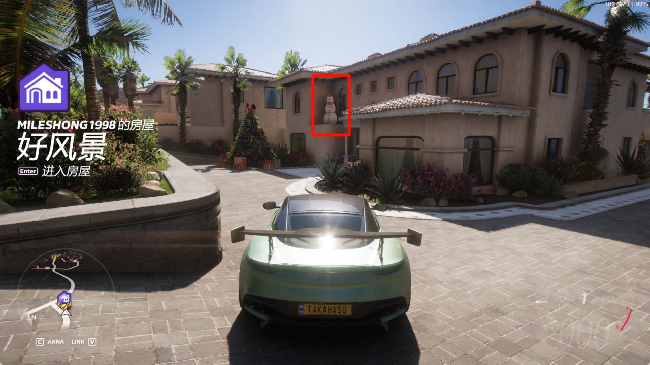 在圣卢卡斯角的玩家房屋:好风景拍摄雪人,位置如图,完成奖励为“节日快乐”汽车喇叭奖励