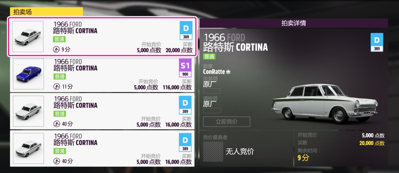 奖励车辆为:1966款FORD 路特斯 CORTINA