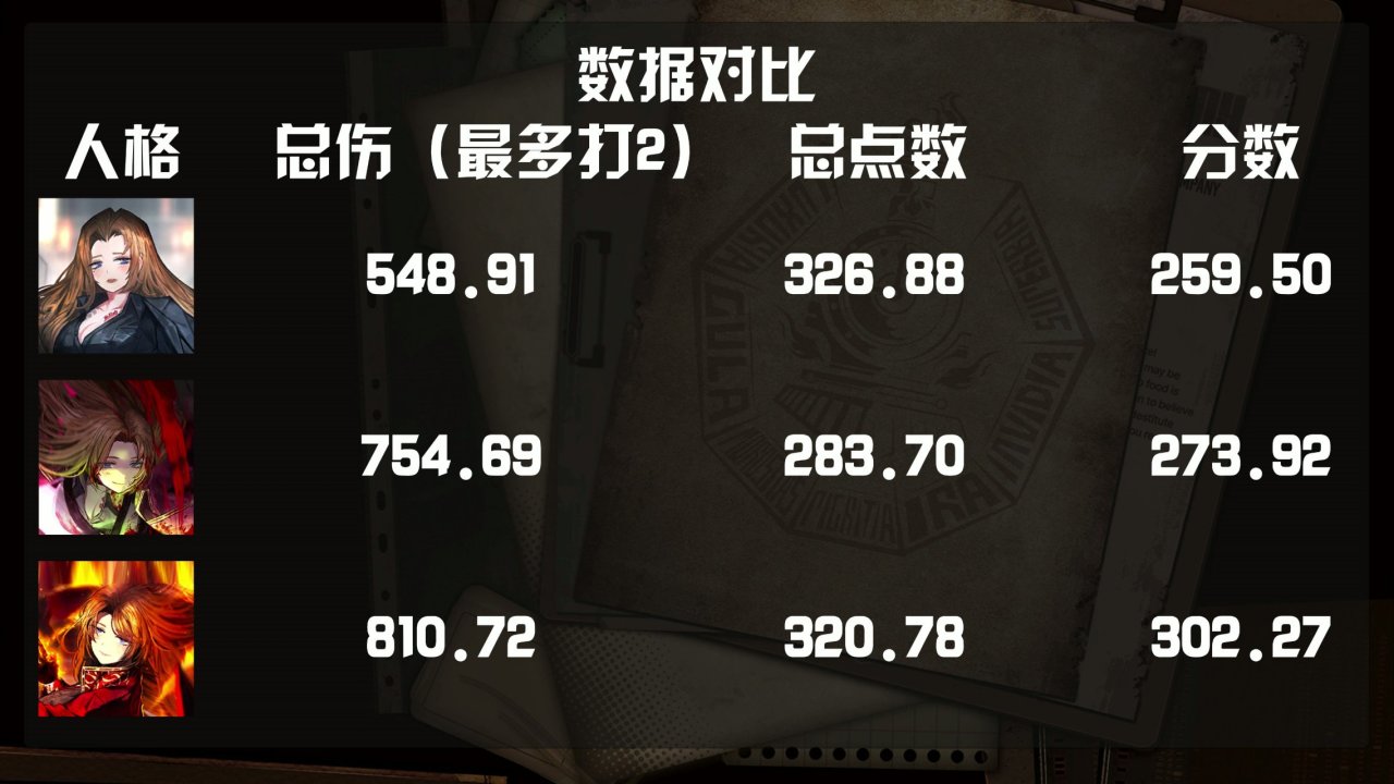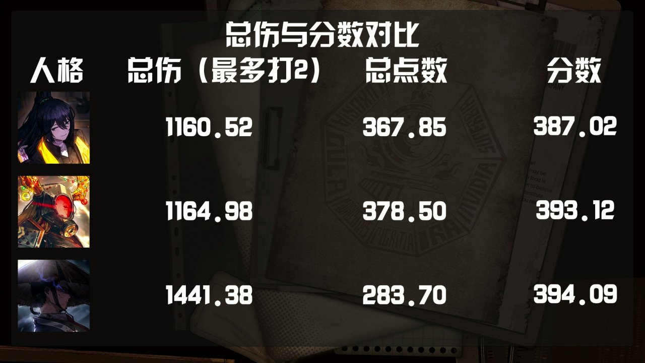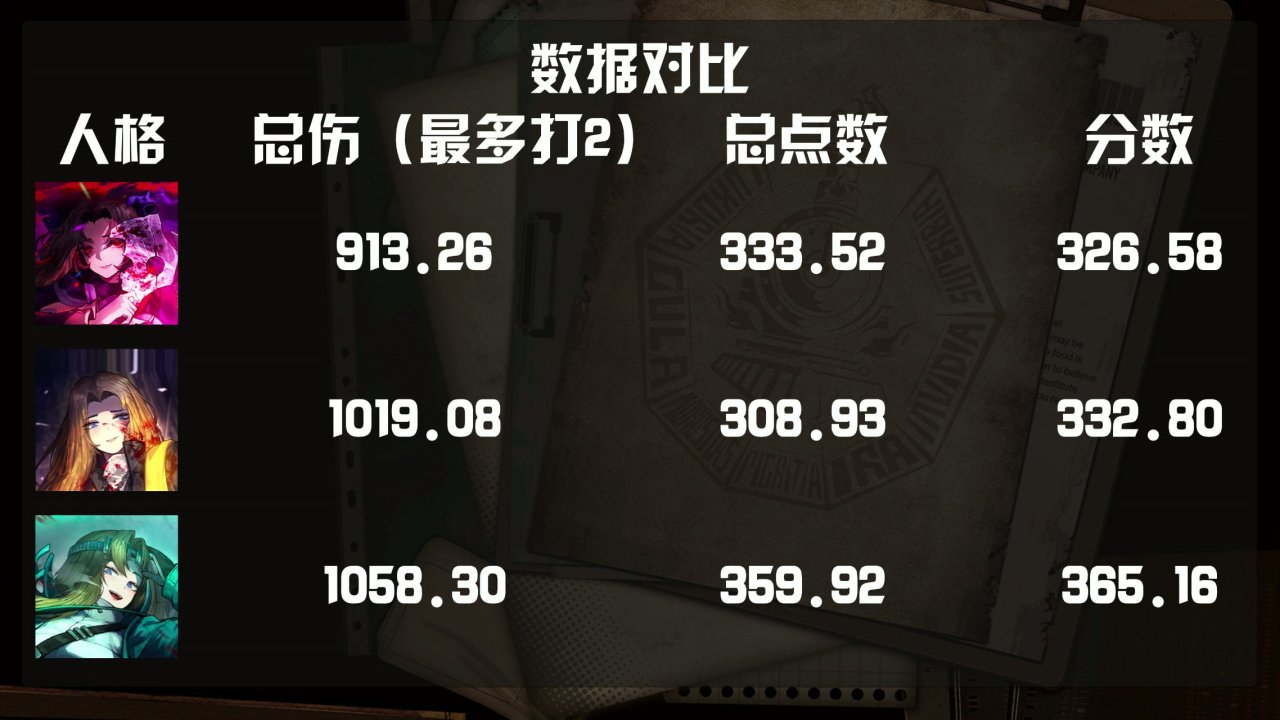 本文规则主要模拟牢外三灯人格在菜刀队的表现,展示在一定规则下12回合循环的上下限点数伤害、分数排名与玩法建议。