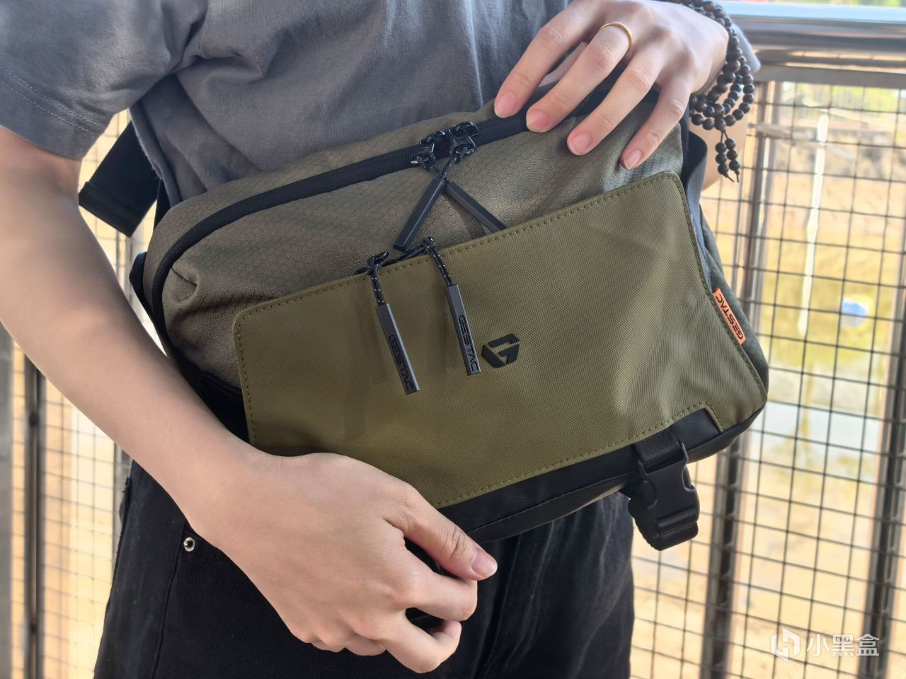 它是这种较为小巧的斜挎包设计,背包为硬朗风格的军绿色,相当耐看。包身仅有300克重,包身材质为牛津布,能够有效抗拉扯及刮蹭,它表面还做了疏水涂层,日常防泼溅是完全不在话下的