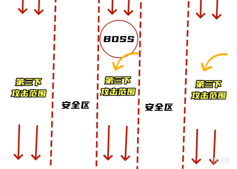 第三下攻击是第三下攻击两条直线旁边的三条直线,也就是说第二下攻击的位置变成了安全区。
