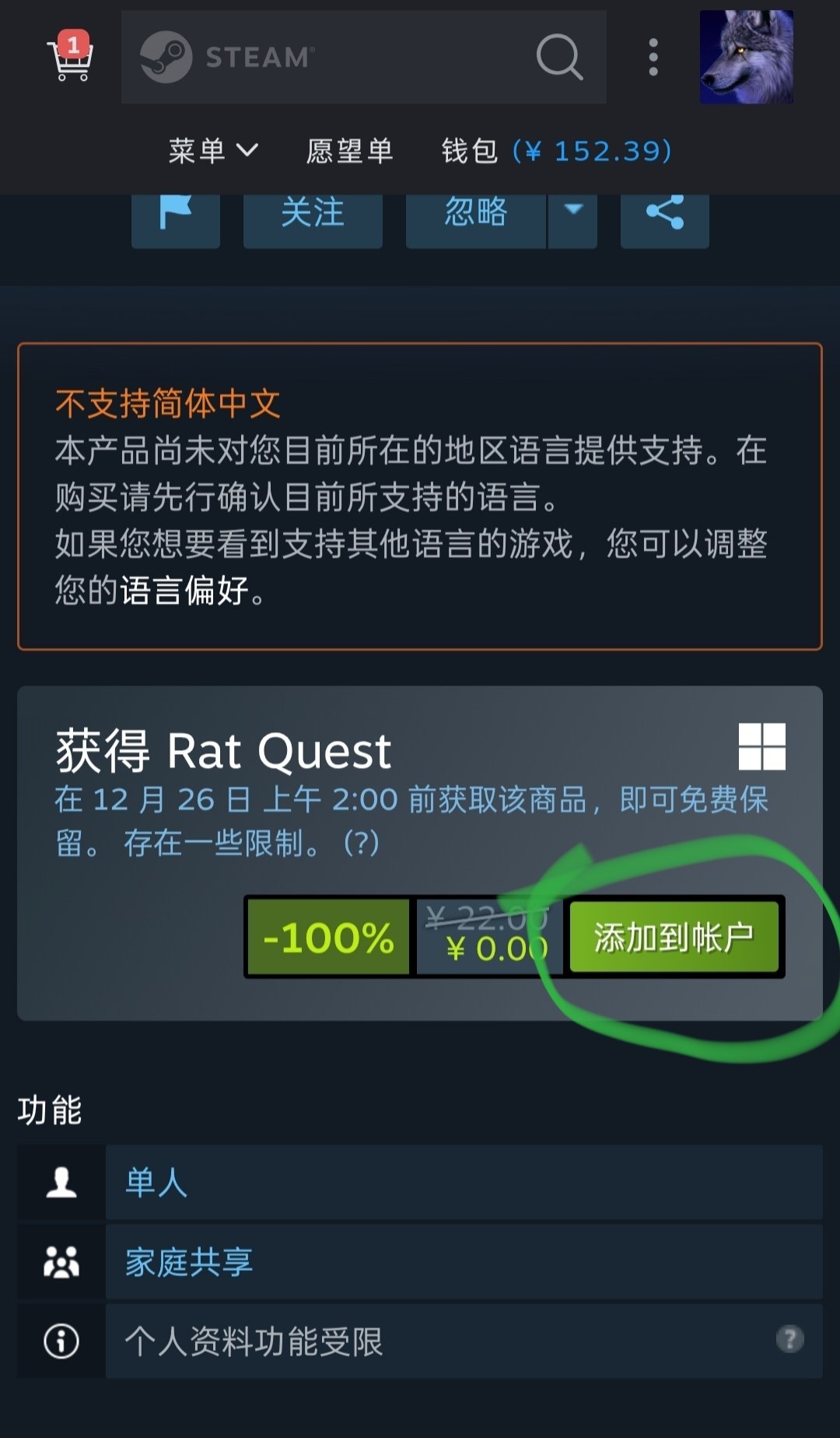 点进去往下拉,在点击绿色的添加到账户就可以了,三个游戏的截止时间都是不一样的。这点需要注意一下哦
