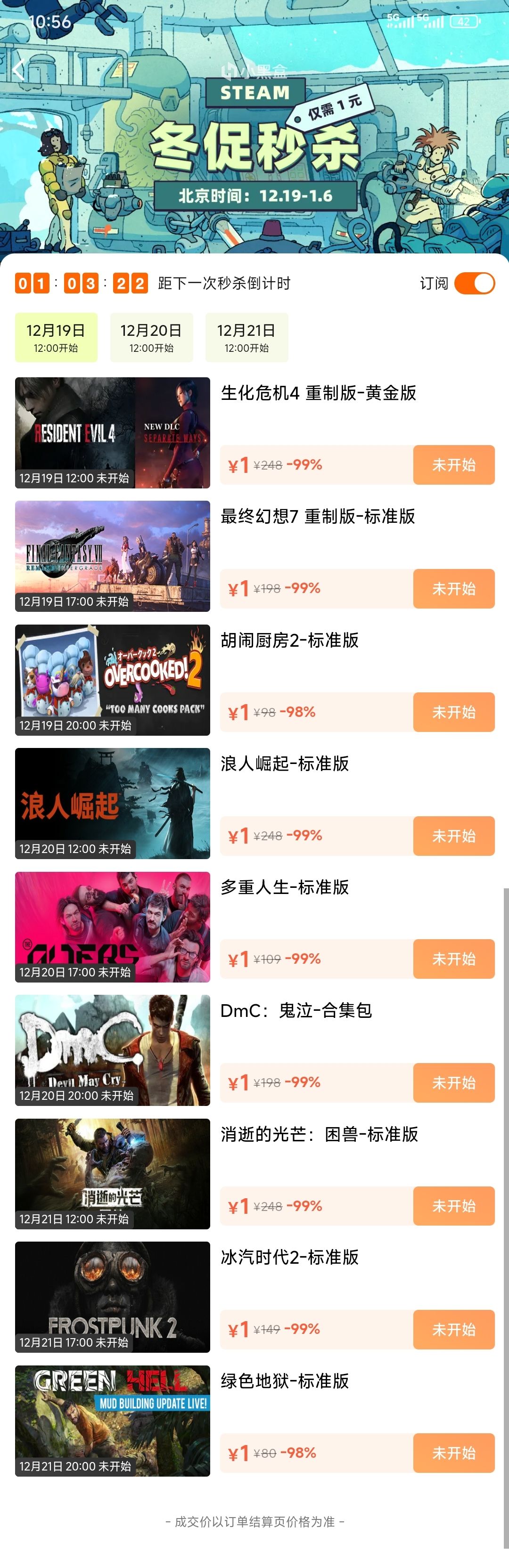 小黑盒「冬促1元秒杀」活动将于12月19日-12月21日限时开启,每日都会开启三轮限时限量秒杀。