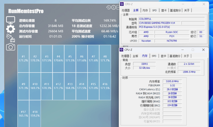 主板:七彩虹CVN B850I 登陸艦,主板供電用料是9+1+1相 60A Dr.Mos,用來帶遊戲神U AMD R7 9800X3D毫無壓力, 內存手動超頻6400 C28,穩定過測(芝奇 皇家戟 6000 C28 32G(16x2)