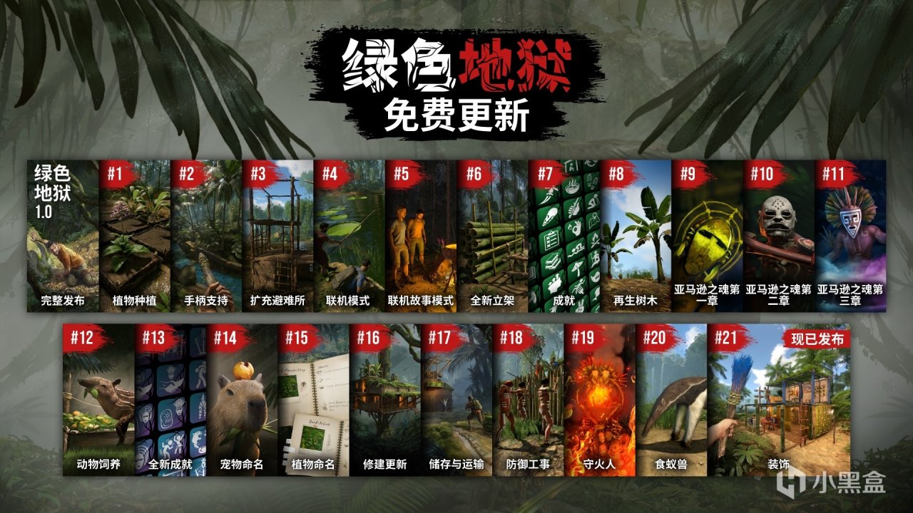 自2019年9月正式版发布以来,我们已为《绿色地狱》推出了21个以上的内容更新:我们加入了在线合作模式、全新的剧情线,并根据大家的反馈新增了大量机制,同时也引入了许多我们认为能够进一步完善终极生存体验的重要新功能。