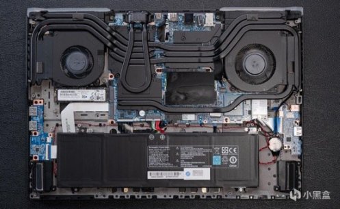 ▲机身内部采用的双风扇+8热管豪华散热模组,双液金导热,压住双核心硬件满载没什么压力。