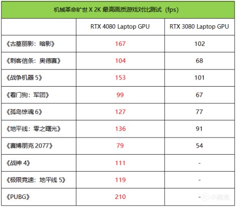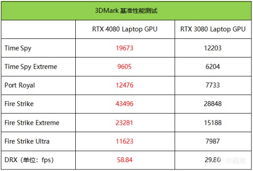下面进入性能测试环节,让我们一起看看RTX 4080 Laptop GPU的实战威力,我们加入了上一代满功耗的RTX 3080 Laptop GPU作为主要参考对象。