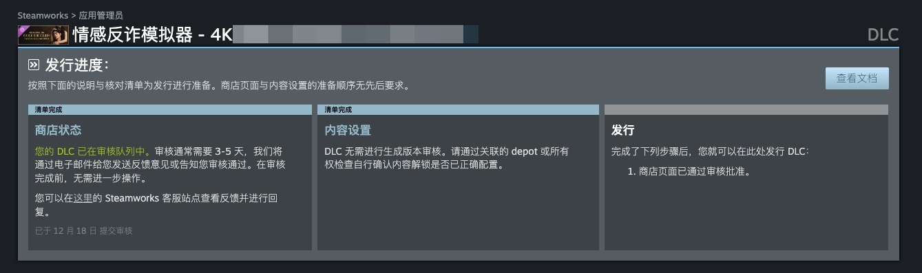 我们第一次提审dlc确实没有经验,steam后台提审发现不是dlc的提审界面,也不知道该怎么修改,翻遍了steam文献库、问了一圈查了一圈,发现是steam后台出了bug,创建dlc的时候就错了,导致我们最后只能重新建了一个dlc才解决。