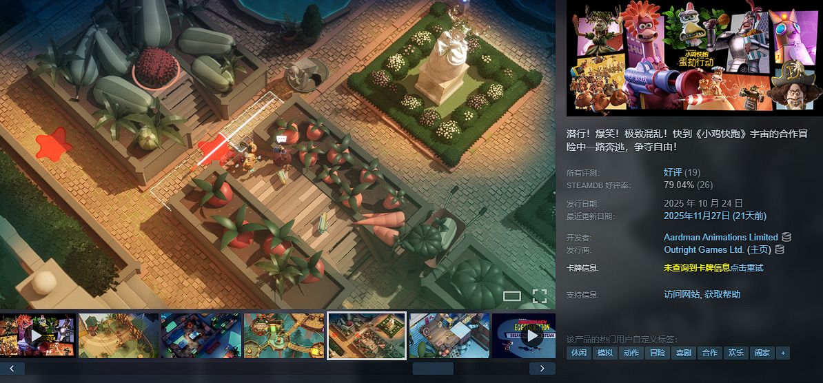 一款以经典动画《小鸡快跑》为蓝本的合作潜行动作游戏,在多处农场中执行潜入与营救任务,通过潜行、干扰与配合来完成目标。