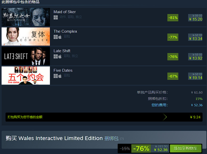 捆绑包两年内史低24折,折后价为52.36元。