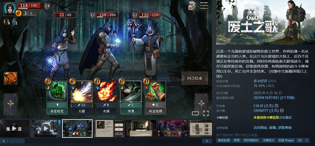 将卡牌构筑与网状叙事融合的废土题材游戏,在文字驱动下体验一个充满突发事件、复杂角色与多方势力角力的残酷世界。