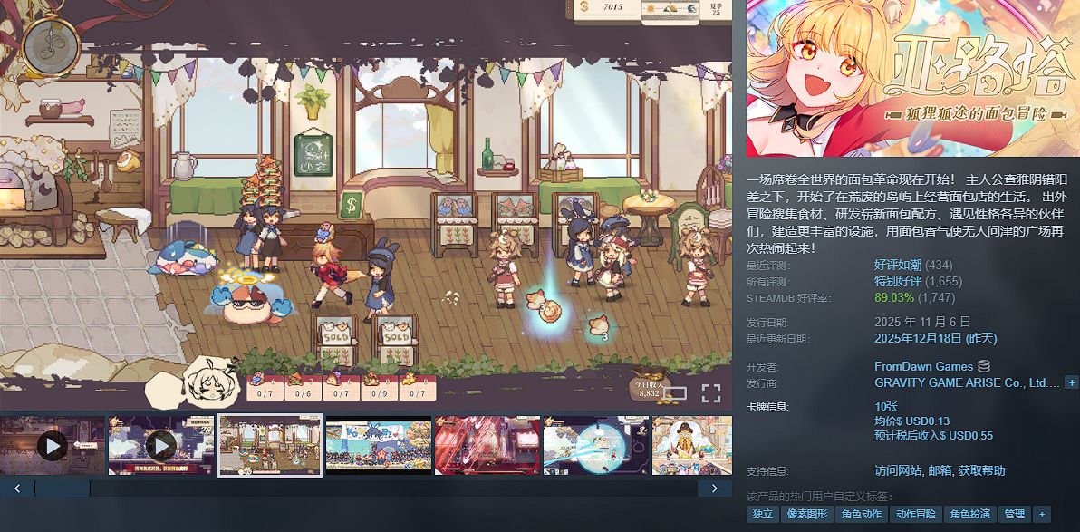 一款以狐狸经营面包店为主题的模拟经营+冒险游戏,结合了轻松治愈的日常与奇幻探索元素。