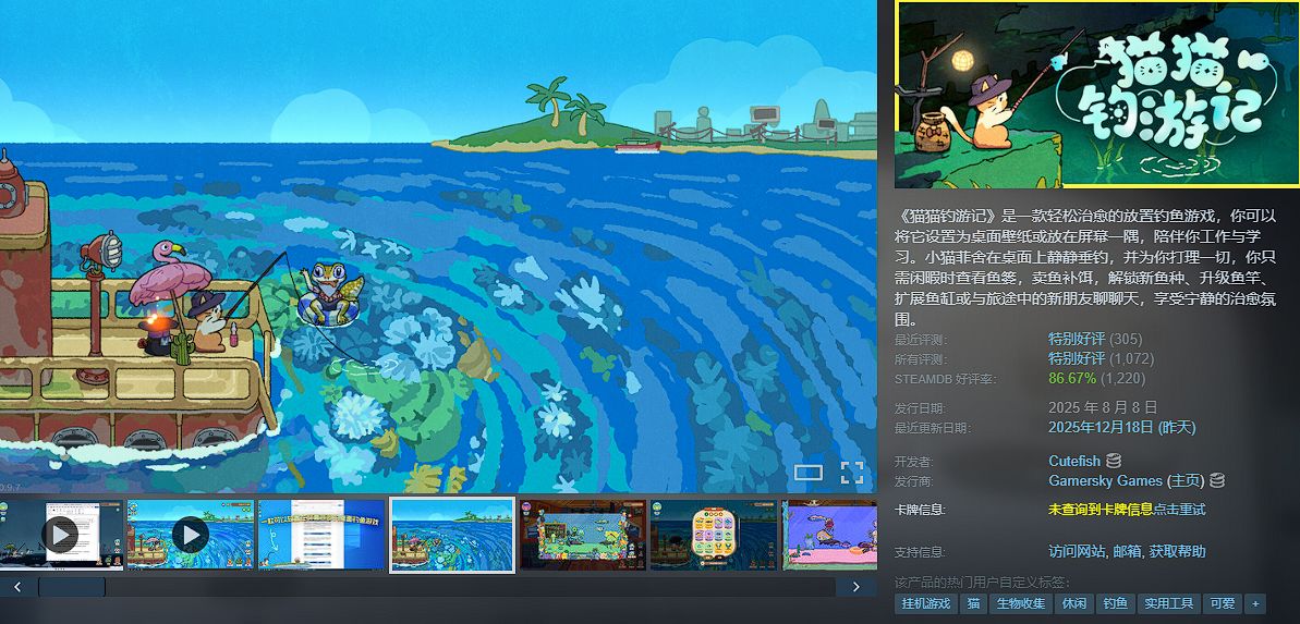 一款轻松治愈的放置钓鱼游戏,你可以将它设置为桌面壁纸或放在屏幕一隅,陪伴你工作与学习。