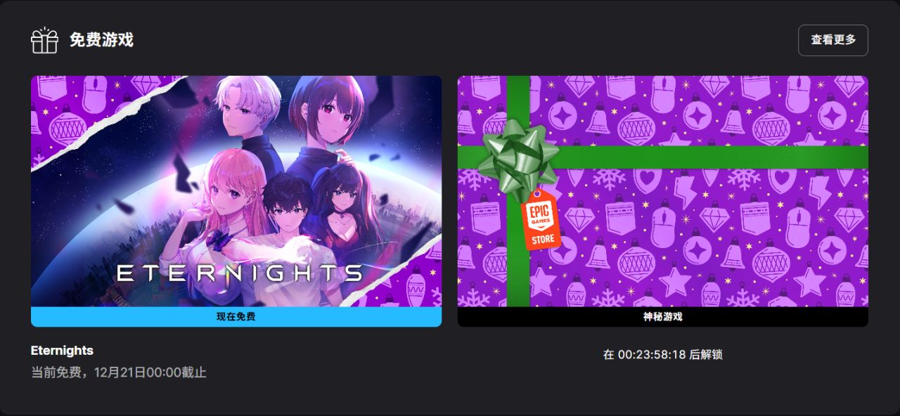 第3款神秘游戏为Steam原价108元的《永恒之夜》,于北京时间12.20,00:01开始领取,至12.21,00:00截止领取!