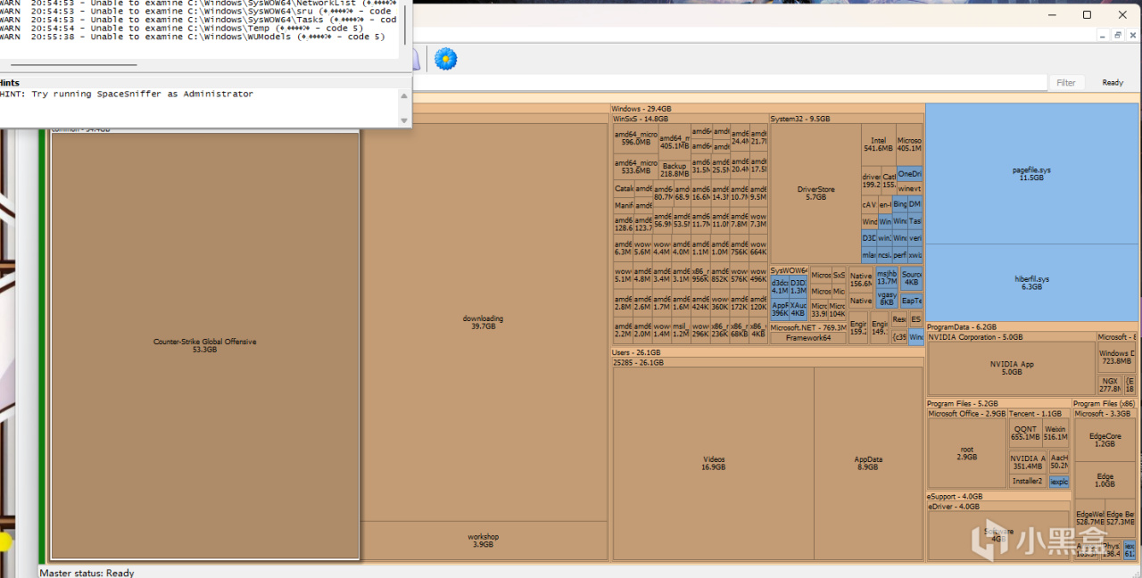 藉助SpaceSniffer類具掃描C盤或者其他盤,可視化查看各文件/目錄佔用情況,重點處理佔用空間大的程序或文件。
