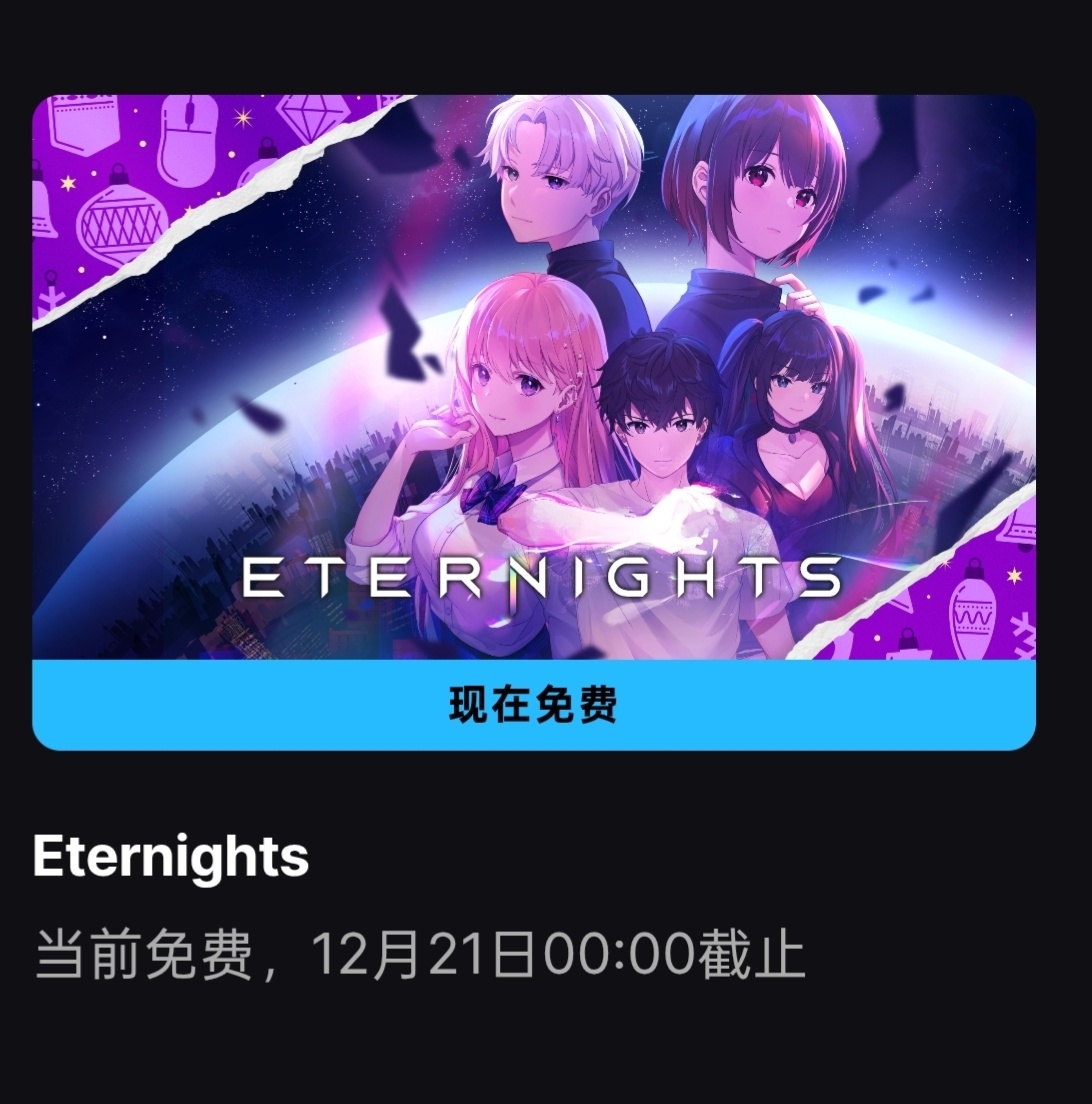 剛剛epic公佈了新的喜加一,那就是戀愛動作遊戲Eternights!截止至21號0點,各位別忘領了