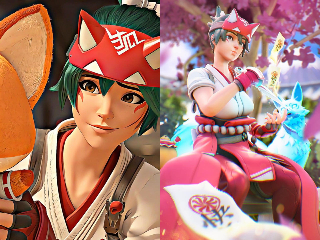 雾子,灵狐巫女,辅助位人气担当。戴着狐狸帽,平时会穿着巫女服,当发起进攻时会脱下巫女服,露出里面的紧身衣。和风服装+灵狐伴身,既能奶又能输出的设定非常讨喜。“我的狐狸好像比你有用”——但谁舍得拒绝一个会扔护身符的巫女妹妹?