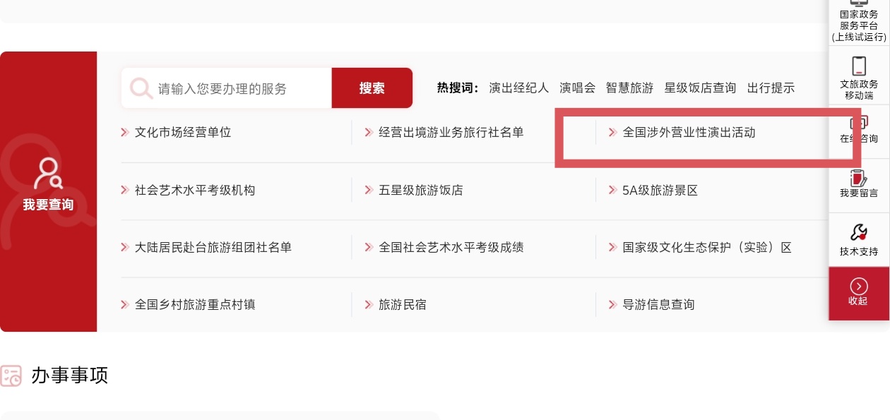 如果你不小心點進入了「國家文化和旅遊部官網」(zwfw.mct.gov.cn)