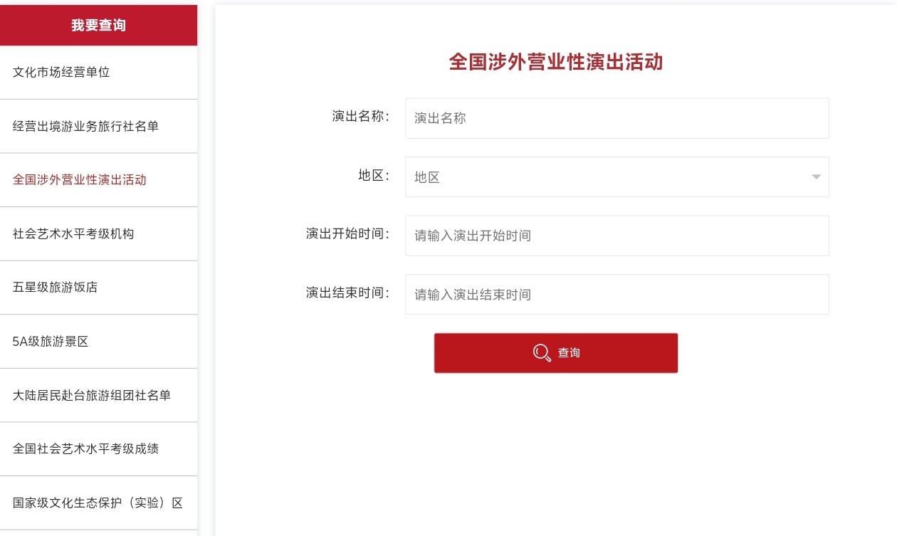 又一不小心在「我要查詢」頁面點到「全國涉外營業性演出活動」