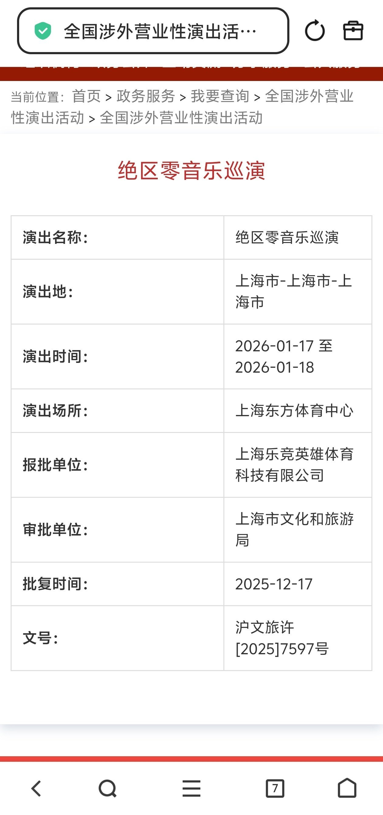 審批狀態:2025年12月17日由上海市文化和旅遊局批覆(文號:滬文旅許[2025]7597號),報批單位爲上海樂競英雄體育科技有限公司。