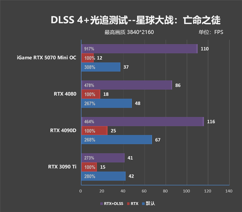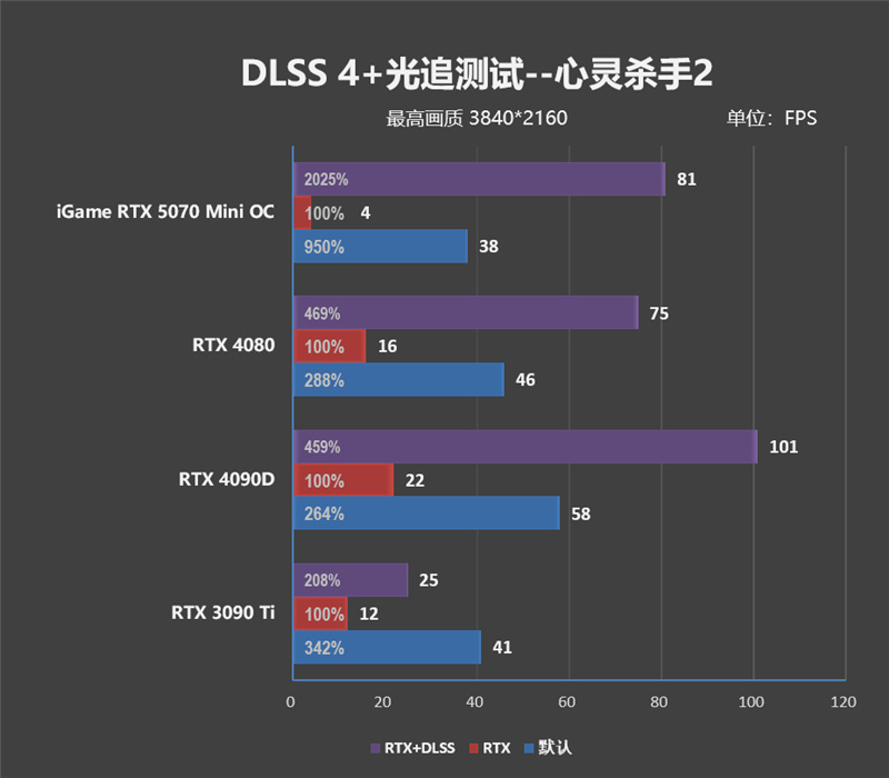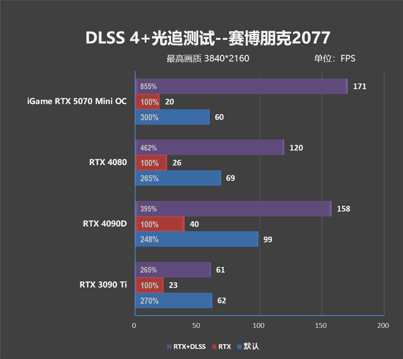 若在4K分辨率最高画质下开启光追,iGame RTX 5070 Mini OC直接爆了显存,只有4FPS。