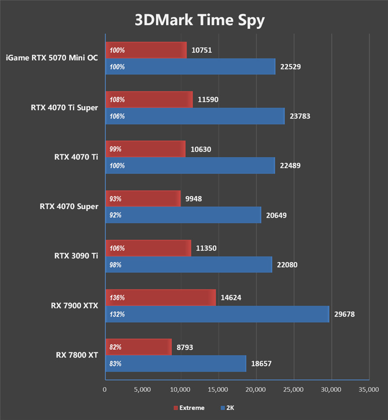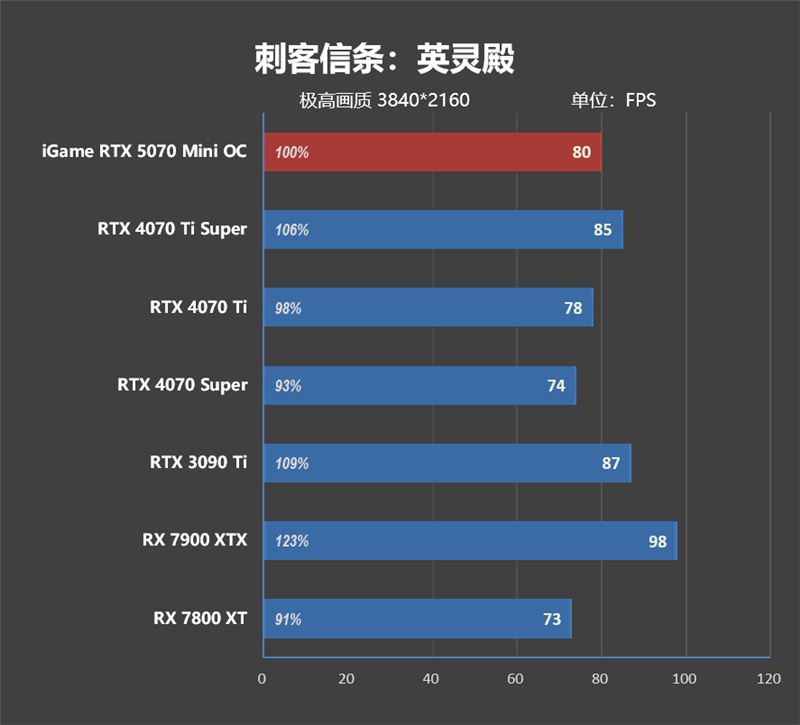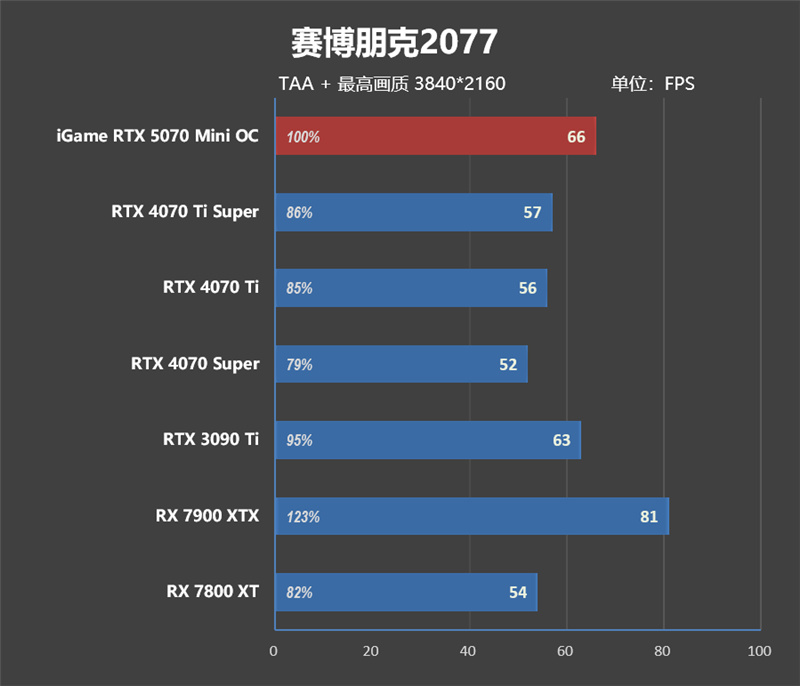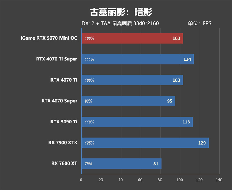 就性能来说,RTX 5070与RTX 4070 Ti相当,可以在4K分辨率下流畅运行主流3A大作,iGame RTX 5070 Mini OC 12GB的确有资格称作是高性能迷你显卡。