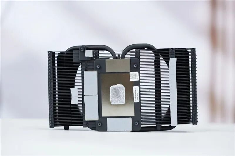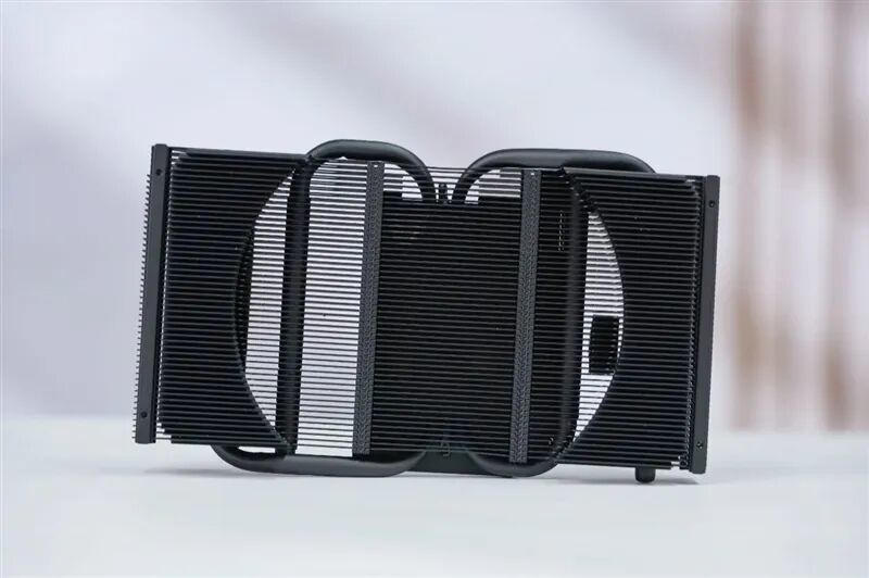 外延鳍片设计,将风扇包裹在其中,不仅增大了鳍片体量和散热面积,也能有类似涡轮风扇的效果,热风从显卡两端和背面直接吹出来。