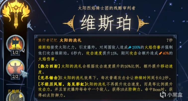 角色方面除了平衡更新外,还给维斯珀更了二段终极技能,太阳的洗礼,带三个火焰记忆打燃烧boss后解锁,还有根据这个技能更新了三个专属的灵活星,比如太阳的洗礼技能里的爆炸和攻速提升,配合灵活星风雨彩虹,就能攻速变攻击力以及首次爆炸命中提升防御力,也是十分的好用。