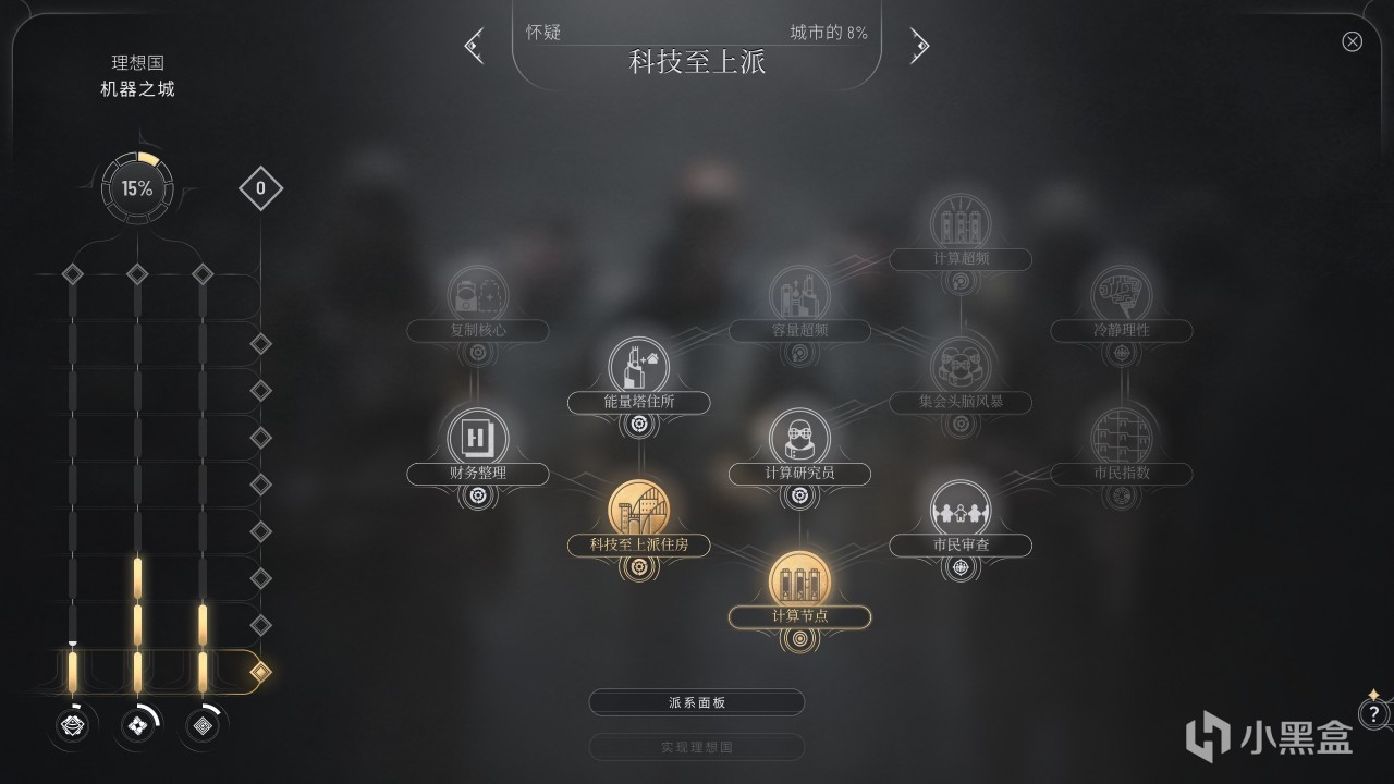 这次新出的DLC包含了八大派系,他们各自有自己的目标,你得靠亲和度解锁理想国树里的法律、枢纽和技能树,要是能点亮所有节点,还能永久解决社会紧张度。