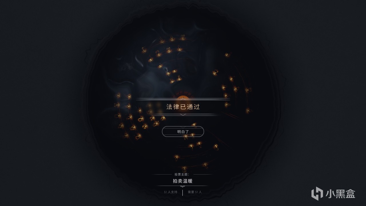 各个派系都会有自己的看法,不解决就会从信任、怀疑再一路到敌视,你就有好果子吃了,所以我们必须支持其中一两个派系,让他们的人数变多,从而让提案通过,但是也要记得时刻存档,如果不通过就回档。