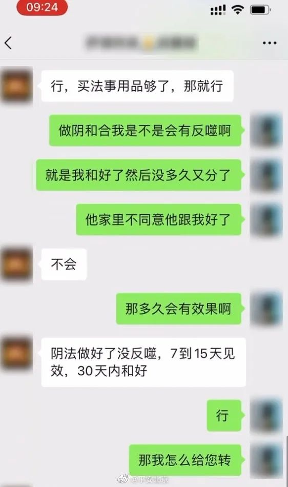 近日,根据通州警方消息,一名女大学生和男友分手后,试图利用网上无意间发现的“勾魂和合术”,来破镜重圆。对方承诺7-15天见效,30天内和好。