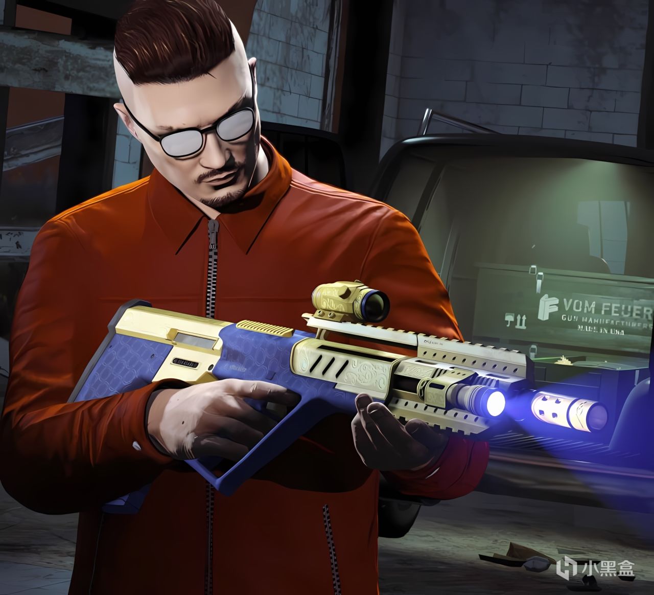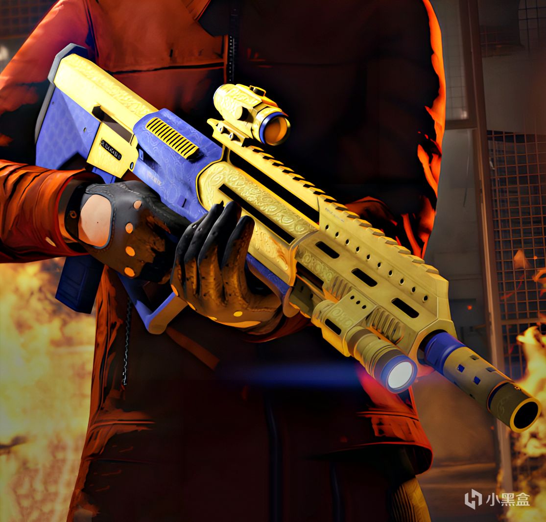 自带特殊曳光弹匣、黄金枪身和涂饰、瞄准镜、蓝光手电筒等改件。